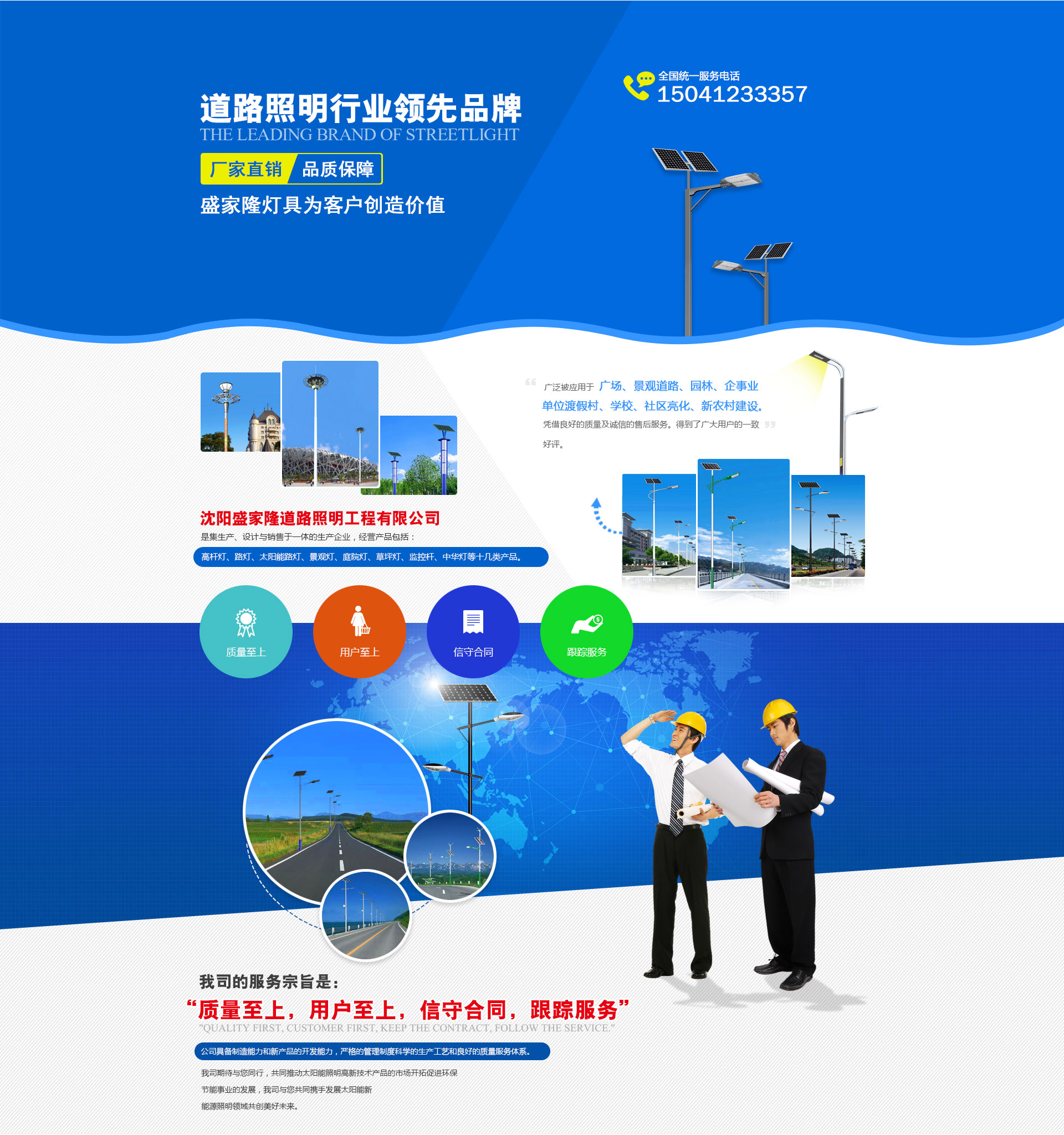 沈陽(yáng)盛家隆道路照明工程有限公司坐落于沈陽(yáng)市于洪區(qū)興盛村愛國(guó),生產(chǎn)各種室外,道路,廣場(chǎng),車站,碼頭,橋梁,庭院及室內(nèi)工礦照明燈具,品種有太陽(yáng)能路燈,道路燈,LED路燈,組合燈,景觀燈,庭院燈,草坪燈,彩色泛光燈,中高桿燈以及配套使用的各種路燈頭,鎮(zhèn)流器,觸發(fā)器開關(guān)箱等系列產(chǎn)品。